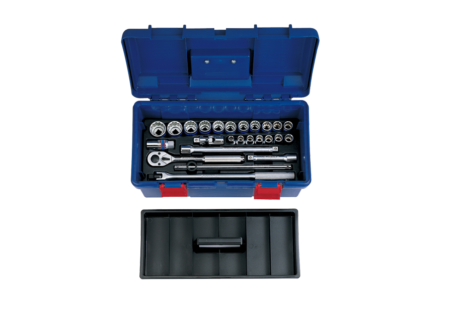 Caja de Herramientas Plástica 17" 10-32 mm 12 Puntas 25 Piezas 1/2" 10-32 mm 12 Puntas 25 Piezas King Tony